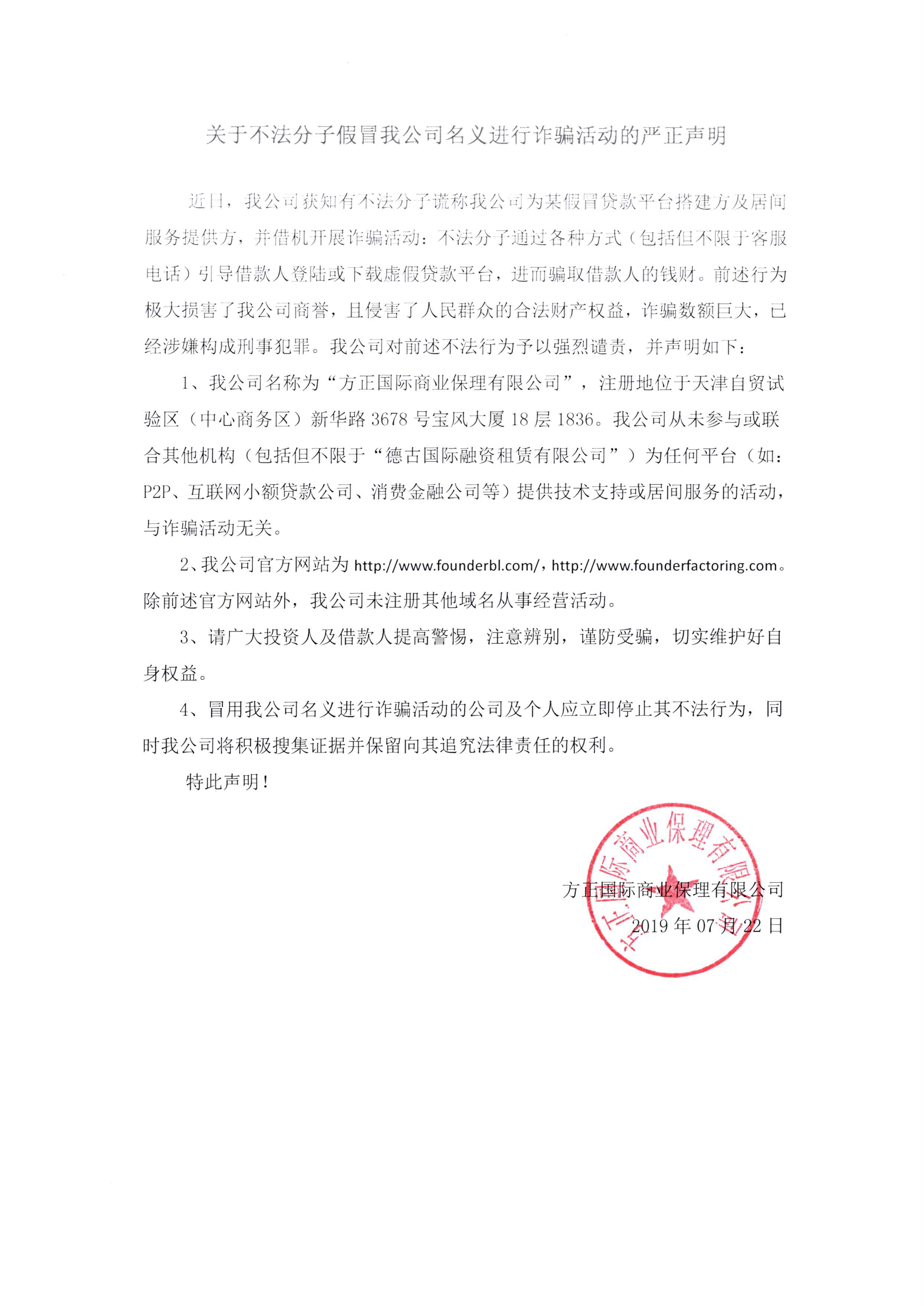 关于不法分子假冒我公司名义进行诈骗活动的严正声明